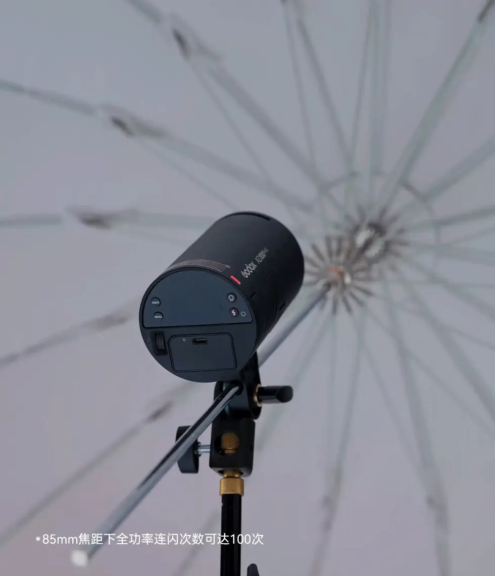 AD100Pro II深度优化散热系统,将全功率连闪次数最高提升至100次,轻松应对各种复杂拍摄场景。