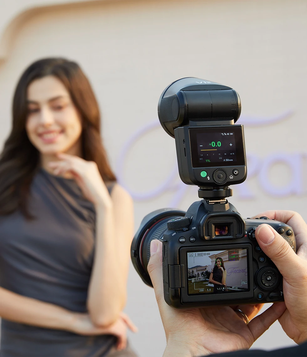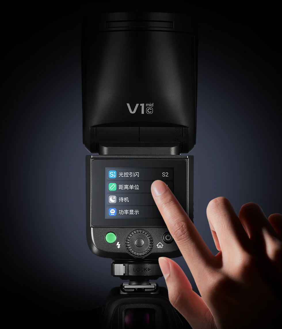 V1mid拥有完备专业功能,支持TTL自动曝光、手动曝光、频闪多种闪光模式,同时可选择高速同步(HSS)、前帘、后帘同步方式,并内置2.4G无线X系统,满足摄影师不同的布光与创作需求。