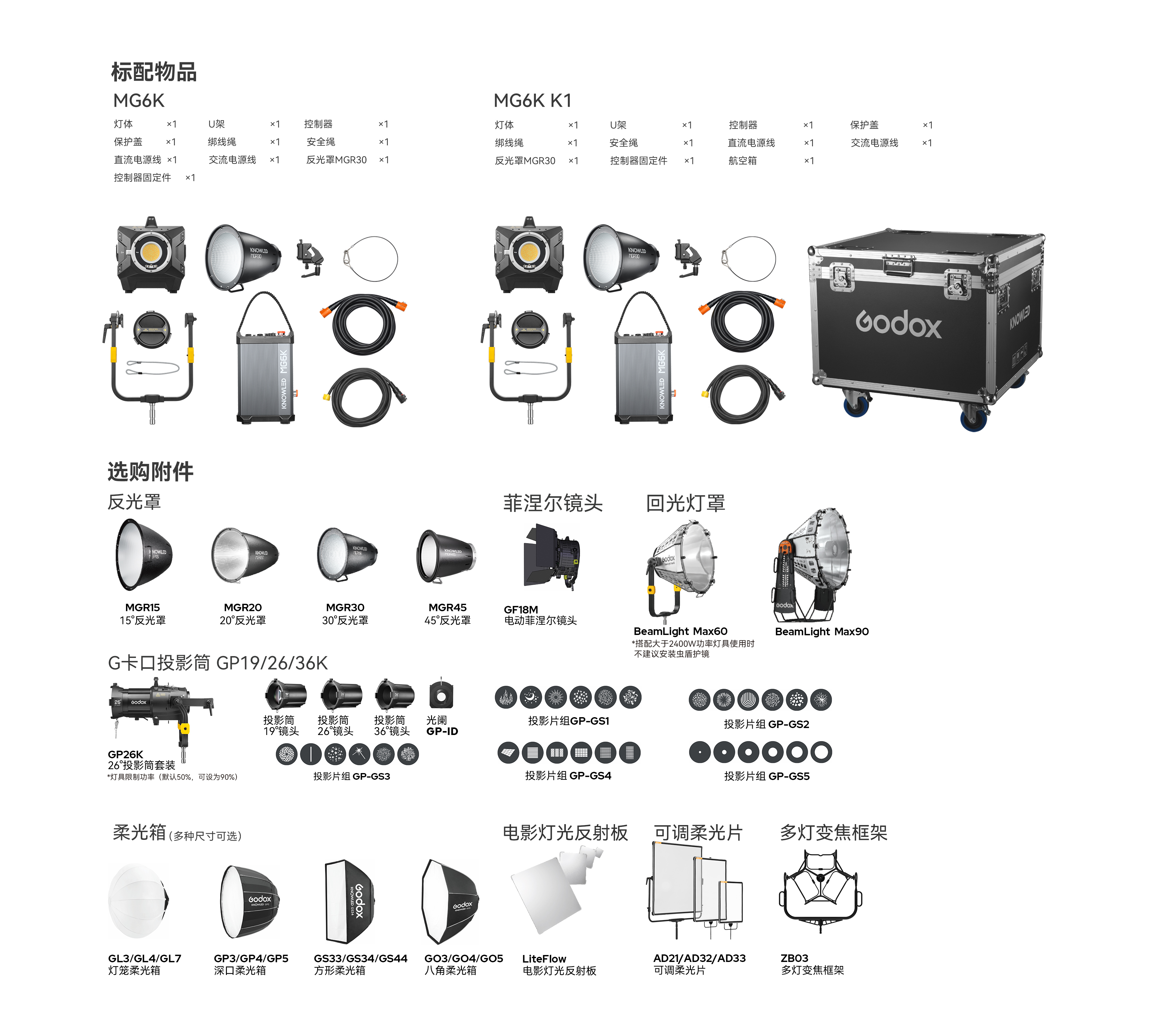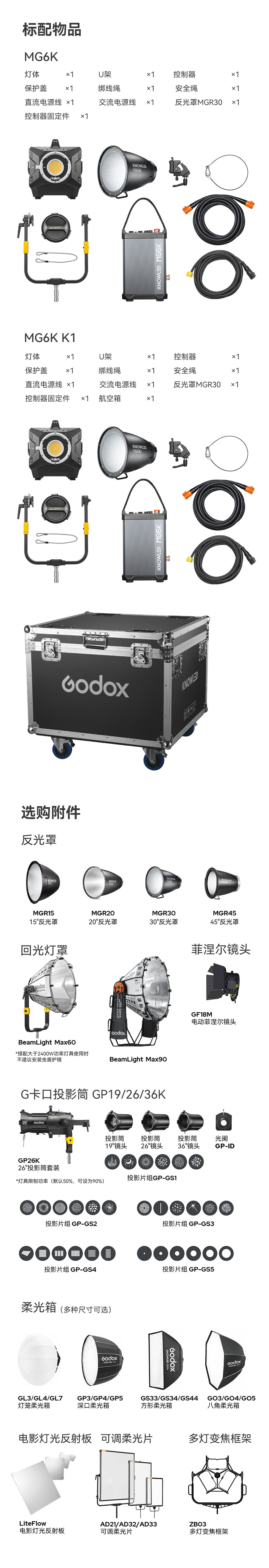 MG6K作为神牛G卡口的新成员,可直接共享神牛G卡口完备附件生态(反光罩除外),以神牛光学系统打造独特光学特效。秉持用户至上的理念,神牛不断拓展附件生态的深度和广度,研发如GL7超大球形柔光罩、电动三灯支架、回光灯罩、电动菲涅尔等新型附件,为MG6K带来丰富多样的塑光效果。