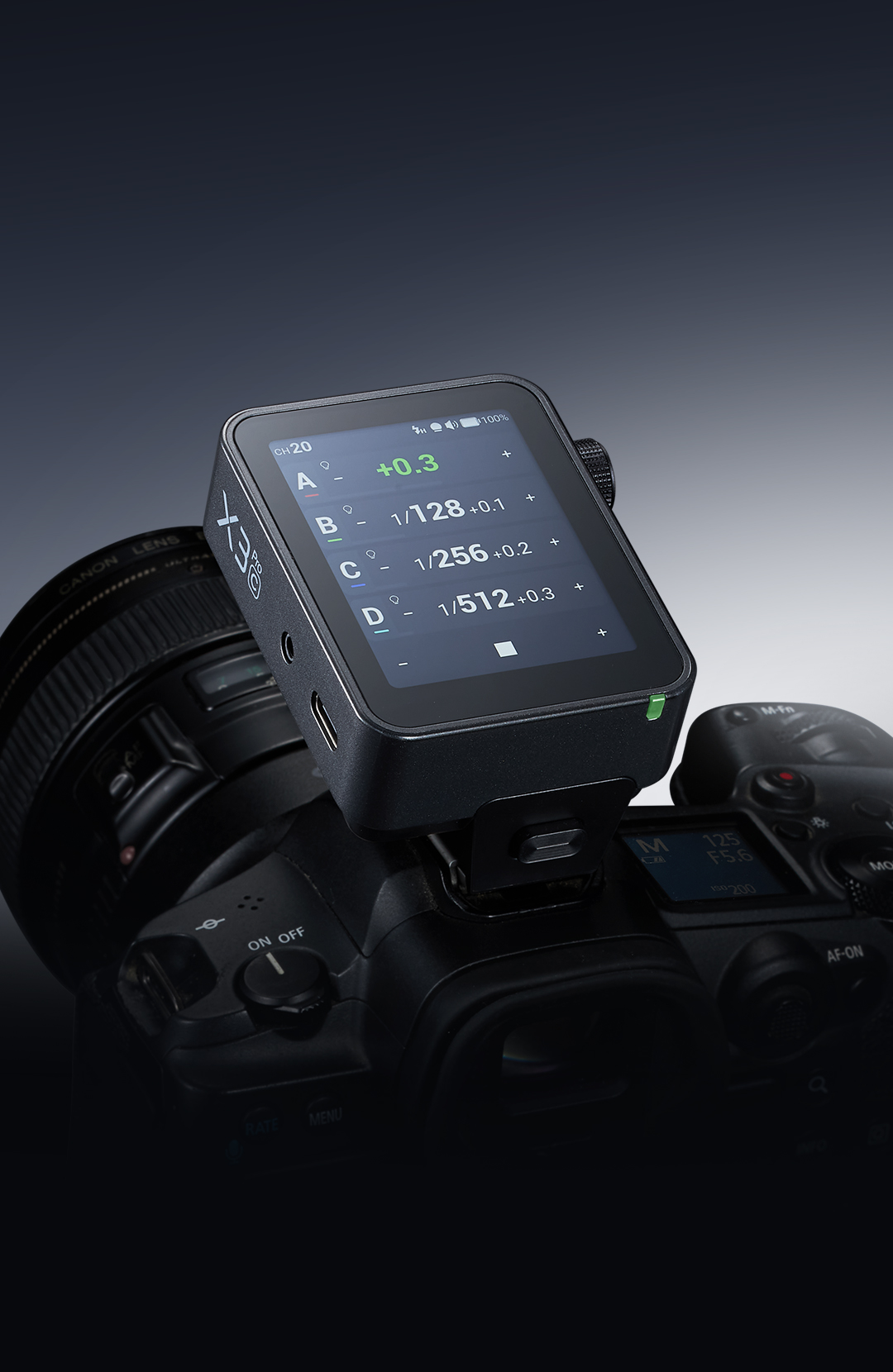 ·X3Pro与XR系列接收器连接后,可控制佳能、尼康、索尼等闪光灯(可使用TTL模式),且可通过同步接口触发其他灯光设备。