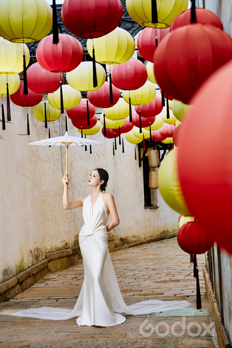 这里的灯笼非常漂亮,但是现在天阴了,建筑的阴影笼罩下来后,人在画面里不太明显,不够立体。