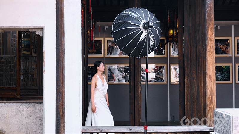 这个时候可以通过神牛AD400proII+QR-P90T深抛柔光箱,对人物进行补光,让人物看上去相对立体。