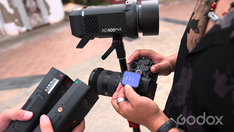 AD400proII连接X3引闪器时,视觉上非常直观,不同组别的灯都有对应的颜色。当我们多灯协同拍摄时,一眼就能通过颜色辨认出哪一盏是需要调整的灯,能更便捷地完成设置。