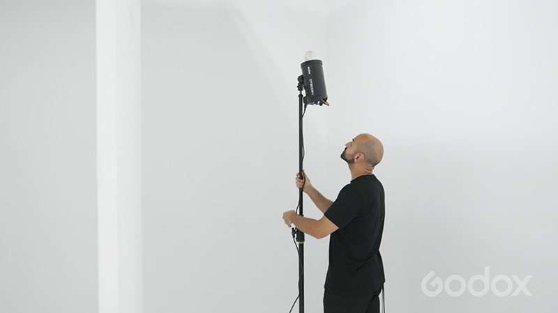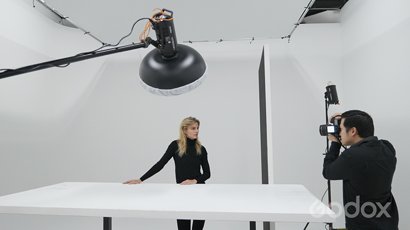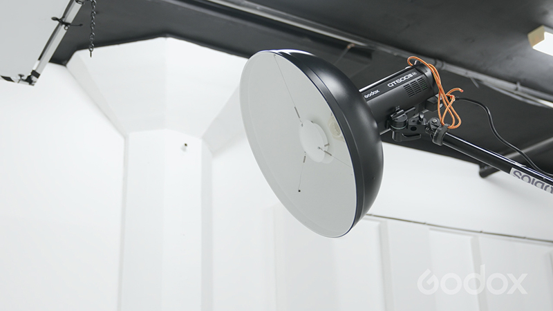 使用顶灯架能精准控制光线角度,并且能够轻松地移动,下方也不会有遮挡。