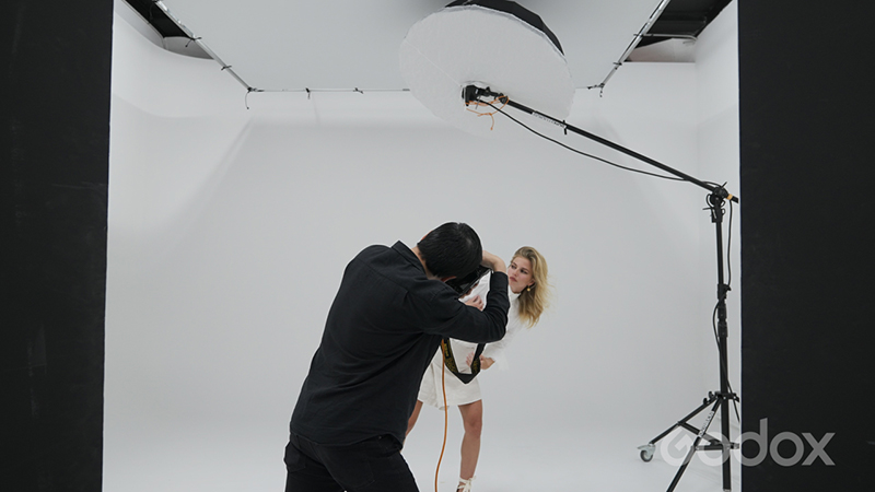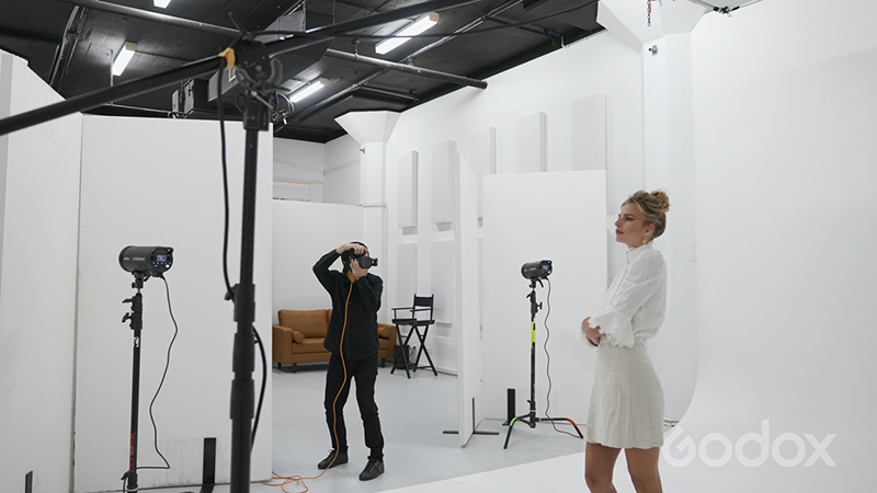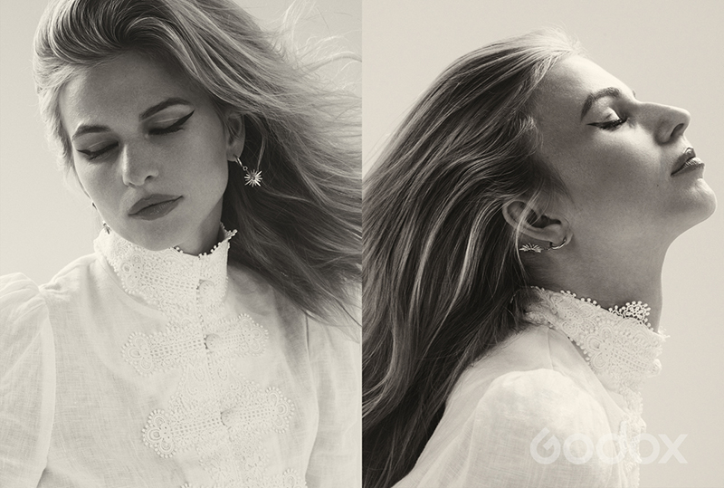 我喜欢在整个拍摄过程与模特沟通,引导她找到合适的感觉。我一边左右移动,一边让模特保持面对镜头,这样就能创造出从经典美人光到更具戏剧性光影的各种效果。