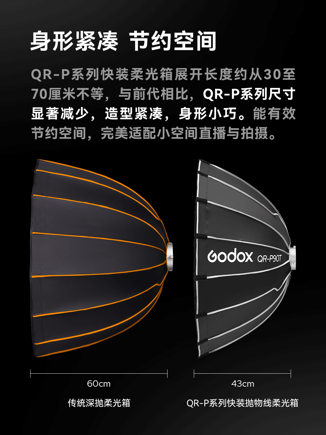 快装抛物线柔光箱 QR-P60T/QR-70T/QR-90T/QR-120T/QR-150T