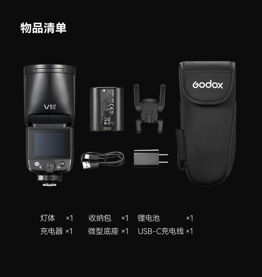 V1mid具备55Ws高功率输出,内置10档可调节LED造型灯与变焦系统,并配备2200mAh高性能锂电池,可带来1.7秒全功率回电时间和满电状态650次全功率闪光,在各种环境下皆可快速响应、稳定输出。