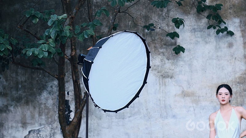 这个时候可以通过神牛AD400proII+QR-P90T深抛柔光箱,对人物进行补光,让人物看上去相对立体。